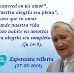 “Si el grano de trigo no cae en tierra y muere, no produce fruto…” Después de una breve, pero grave enfermedad, nuestra hermana Esperanza Tellería, nos dejaba el 27 de septiembre para unirse a nuestra comunidad del cielo. Nacida en Zumárraga, tenía 83 años de vida, 56 de l
